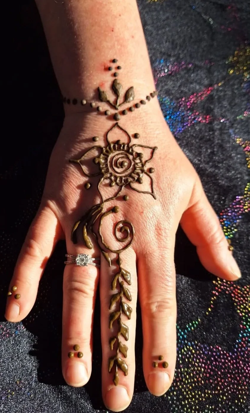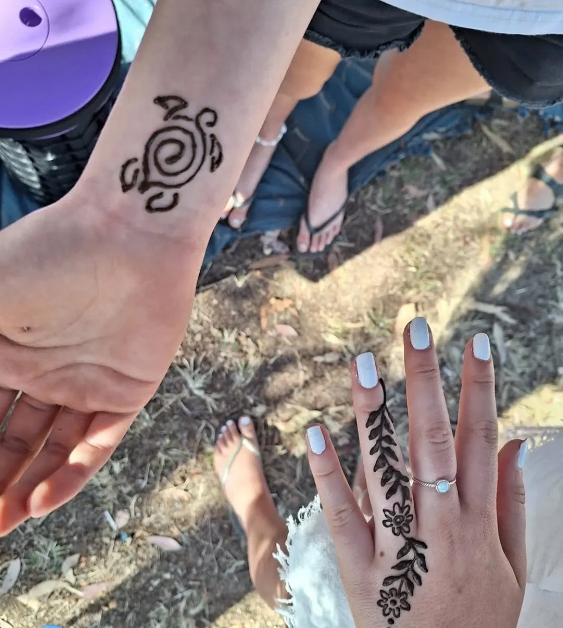 My designs vary from small 5-dollar ones like a turtle and a flower to all the way full on mandal hand designs including fingers.